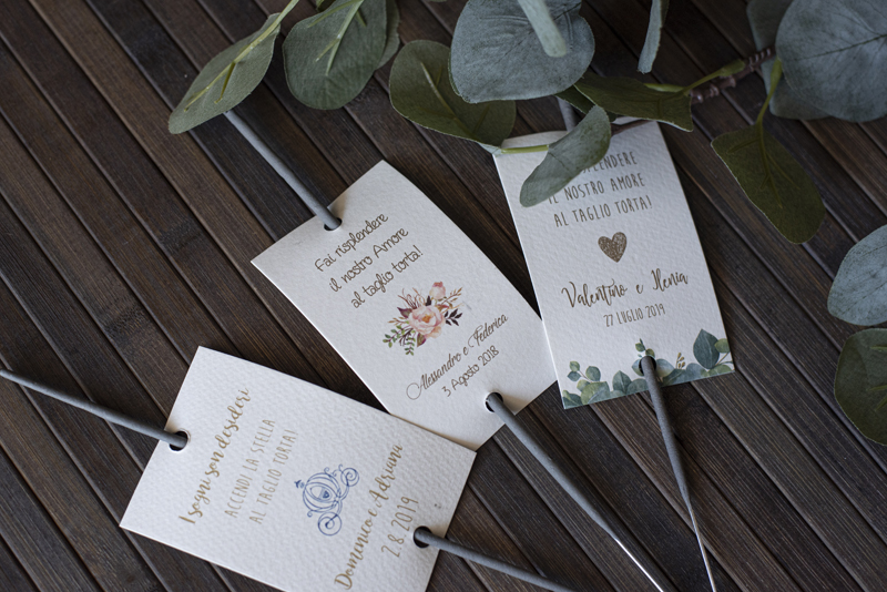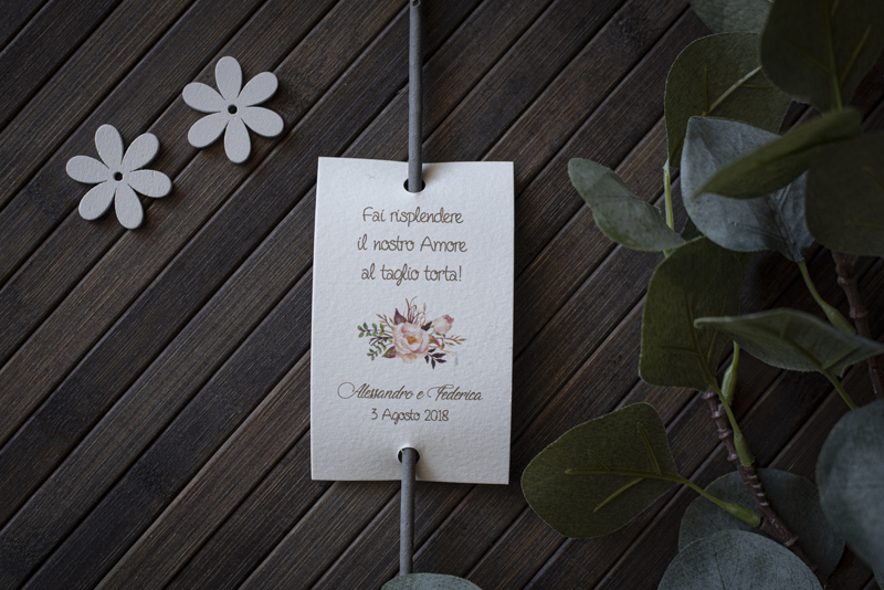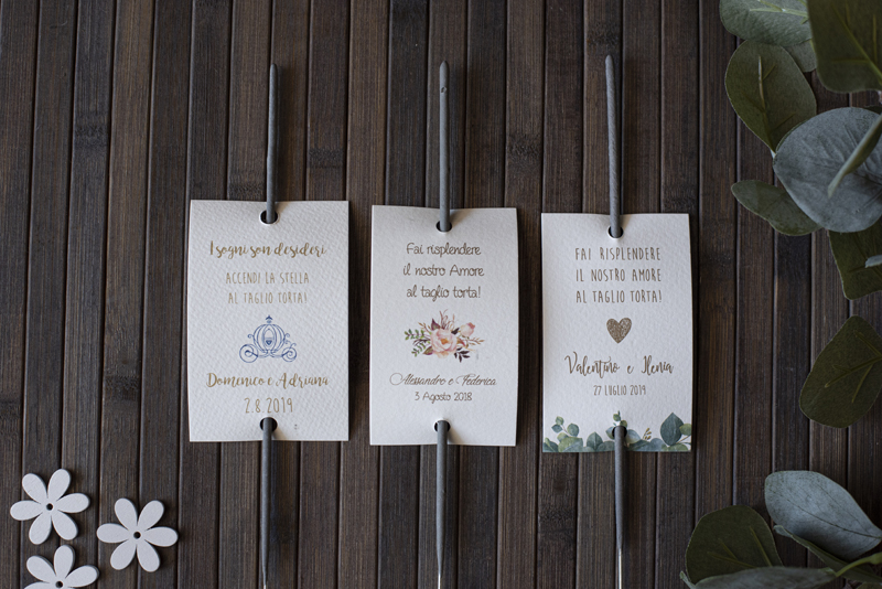 Cartoncini per le stelle filanti in coordinato alle vostre partecipazioni, realizzate con la stessa carta e grafica con 2 fori per inserimento stella filante (stella filante non inclusa – minimo ordinabile 100 pz)